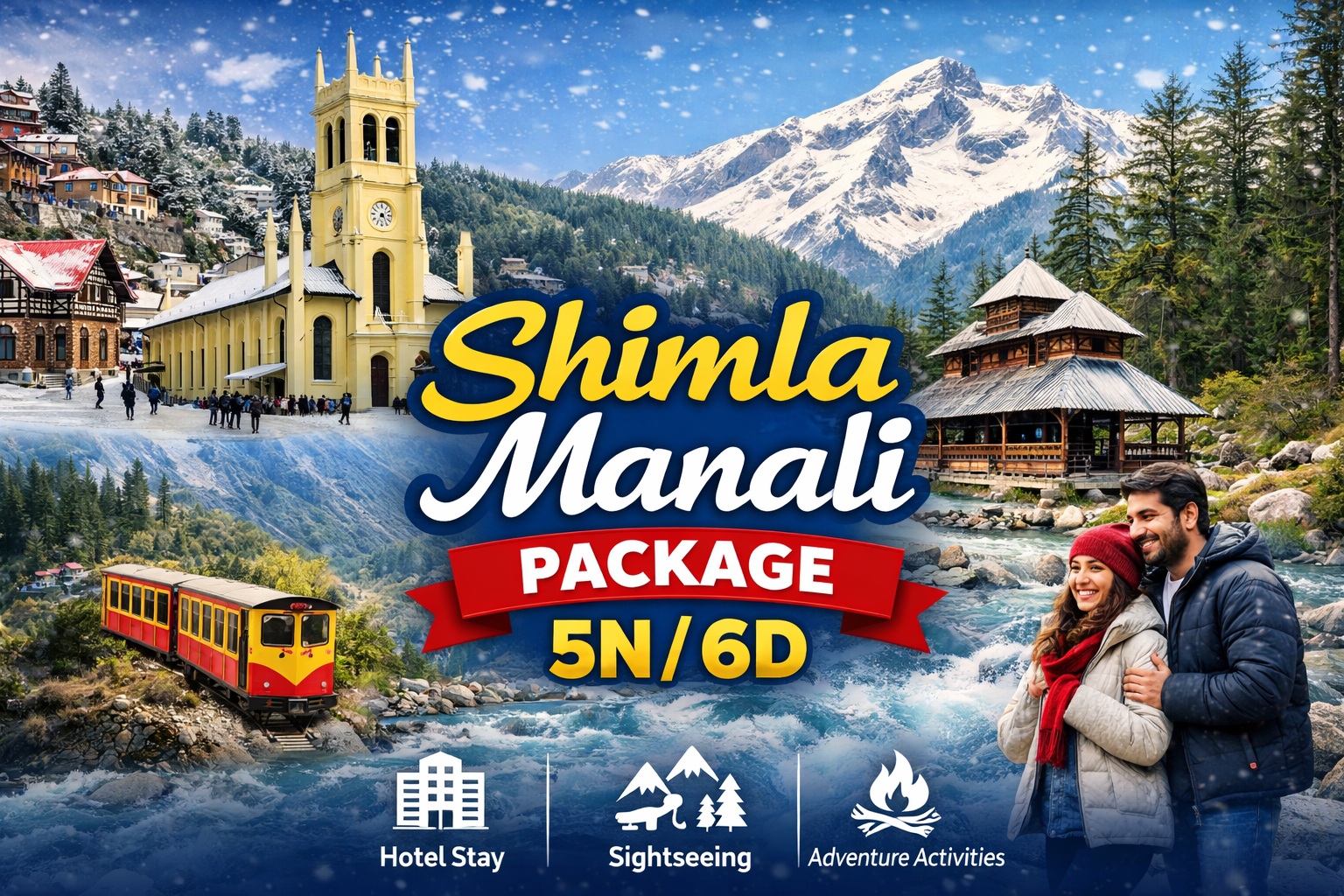 - ✔ Sightseeing covering Shimla, Manali, Kufri, Solang Valley & more