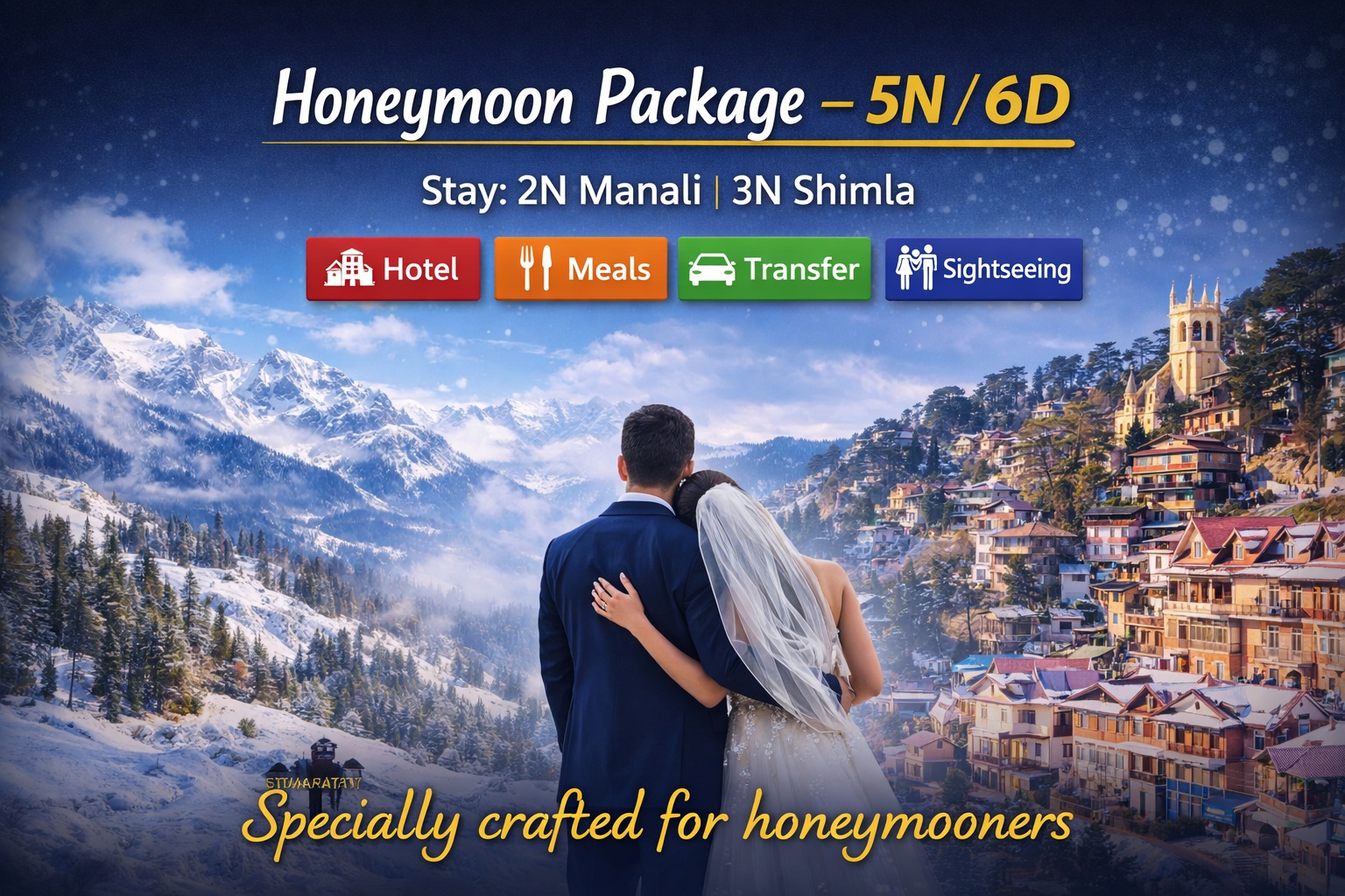 - ✔ Sightseeing covering Shimla, Manali, Kufri, Solang Valley & more